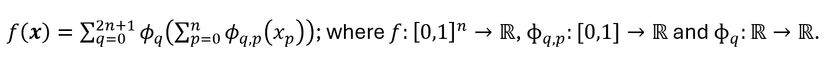 The equation looks complex, but it is just a function which takes a vector input x (hence multivariate), and gives out a real valued output (which is by definition of any function). It does so by applying only univariate functions (or single variable functions) Ď as described above, and summing up the outputs of these Ď's.
