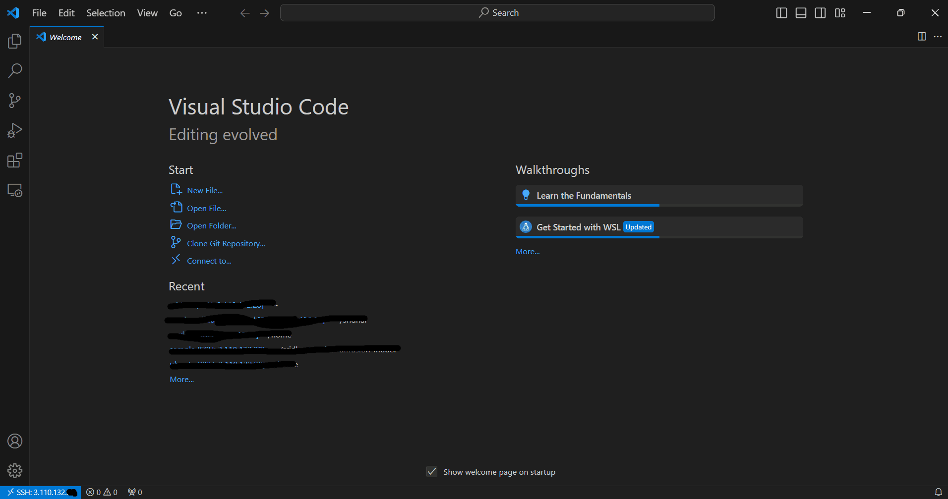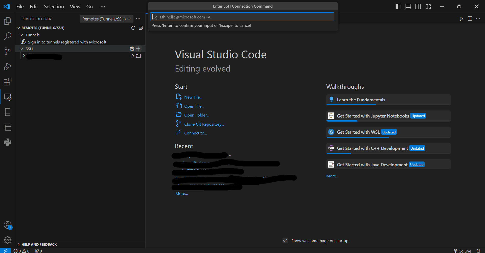 Visual Studio Code Window with Remote Explorer Tab Open