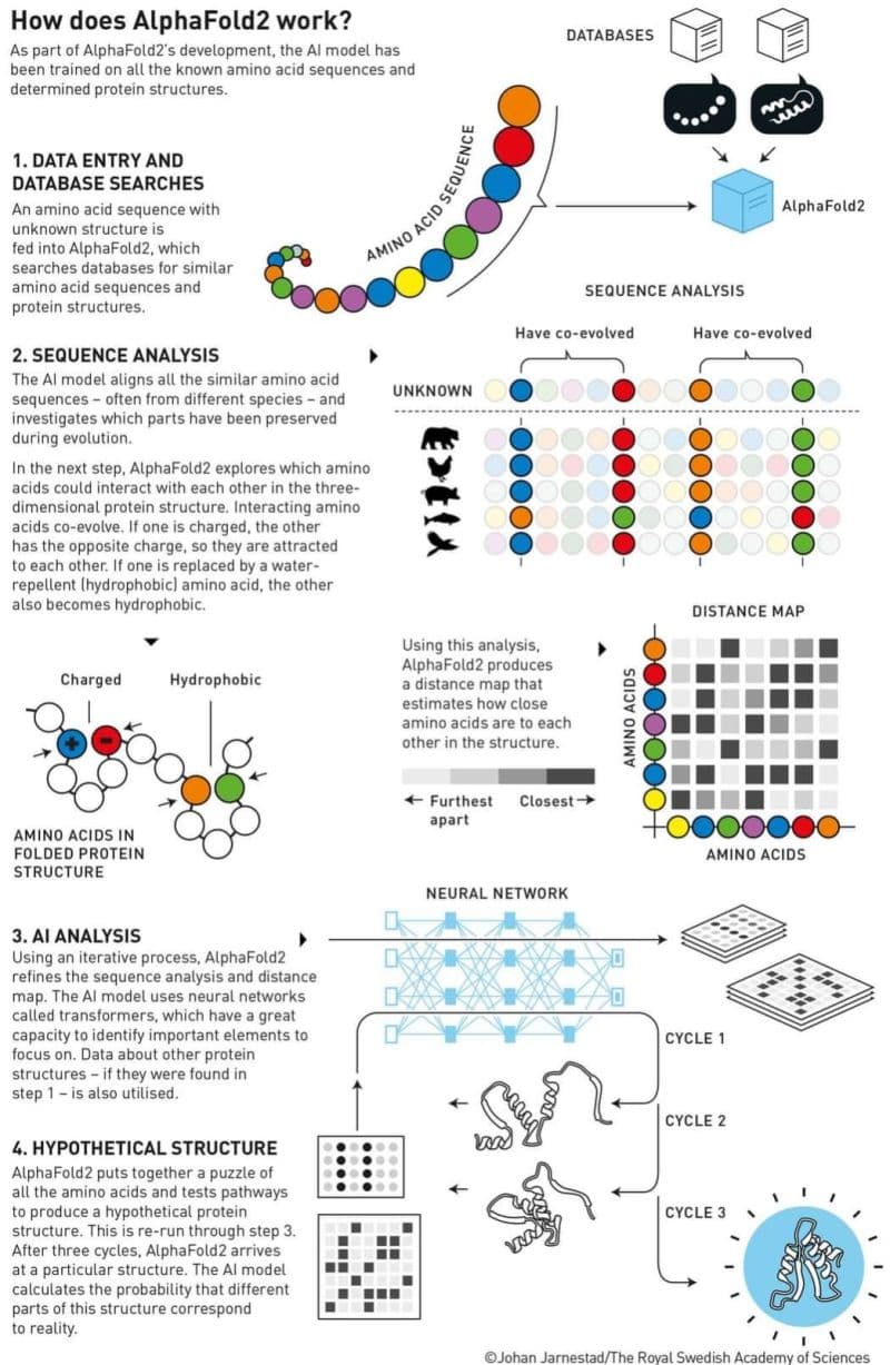 1. Data Entry and Database Searches: The model analyzes amino acid sequences to predict unknown protein structures.